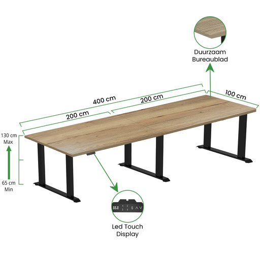 Onze elektrische zit-sta vergadertafels zijn ideaal om eenvoudig de hoogte van de tafel te verstellen. Hierdoor kun je actief vergaderen en afwisselen tussen zittend en staand overleg. Dat stimuleert niet alleen de concentratie, maar ook de productiviteit tijdens vergaderingen. Dankzij het sterke onderstel kunnen deze tafels grote bladen dragen en veel gewicht aan. Daarnaast zijn ze zeer geschikt voor flexibele vergaderruimtes waar meerdere teams of groepen gebruikmaken van dezelfde tafel.